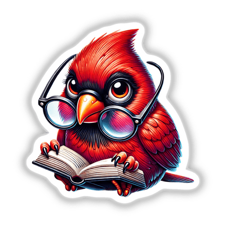 Red Cardinal Bird in Reading Glasses Open Book
