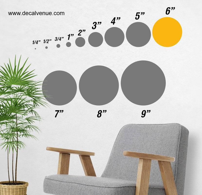 For actual size of the 6 inch size dots, you can download our printable circle template to help you determine if this decal size is the right fit for you project.