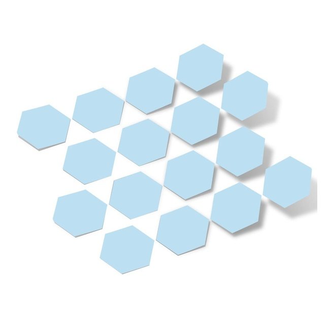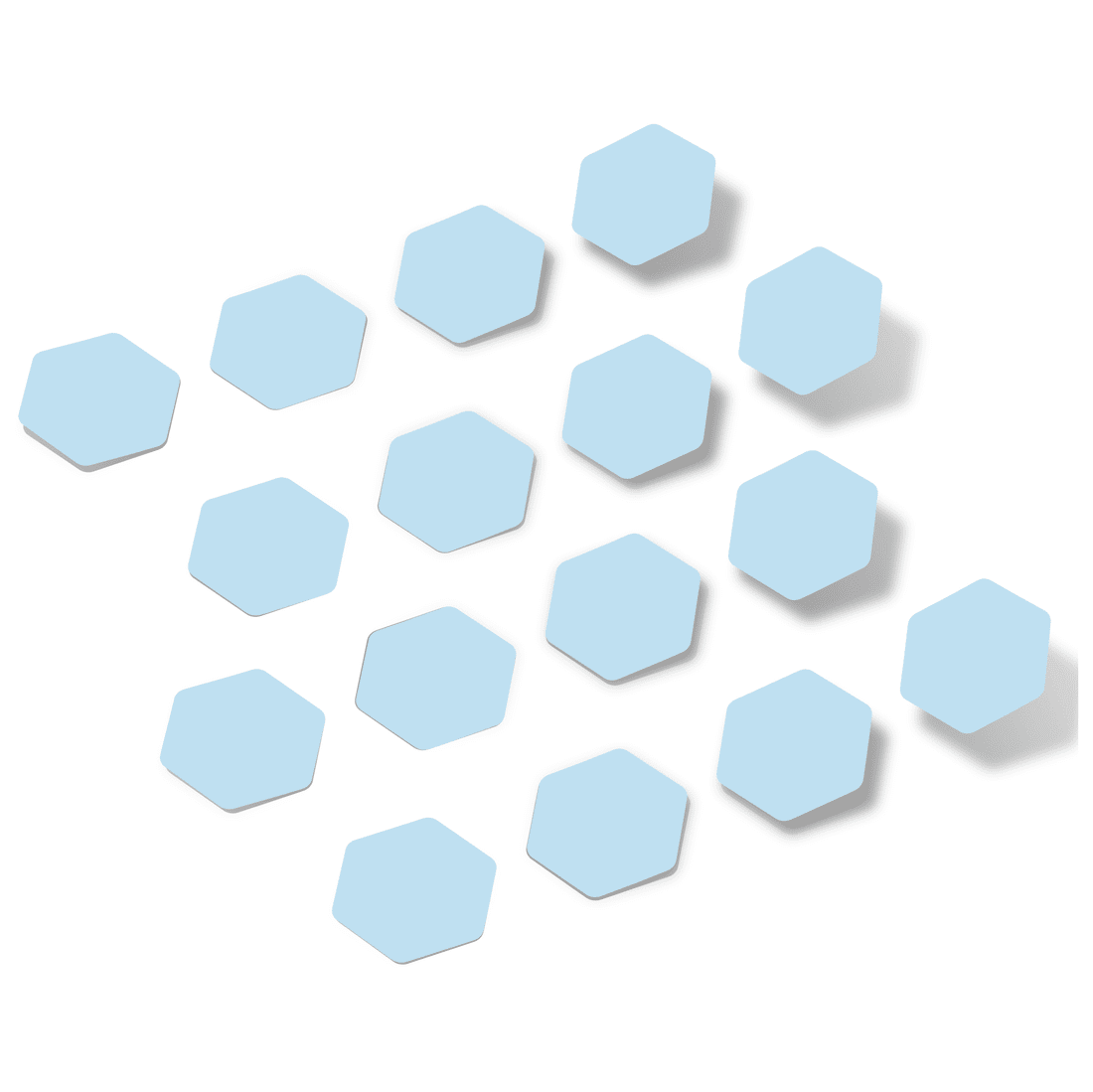 Enhance your space with our Baby Blue Hexagons Vinyl Wall Decals in a combination of different sizes. Made from high performance grade vinyl, these quality die-cut decal stickers feature an anti-reflective matte finish and can be arranged in a variety of unique styles to decorate walls, vehicles, glass windows, electronics, or any other smooth surface, with easy, clean removal and no sticky residue left behind!