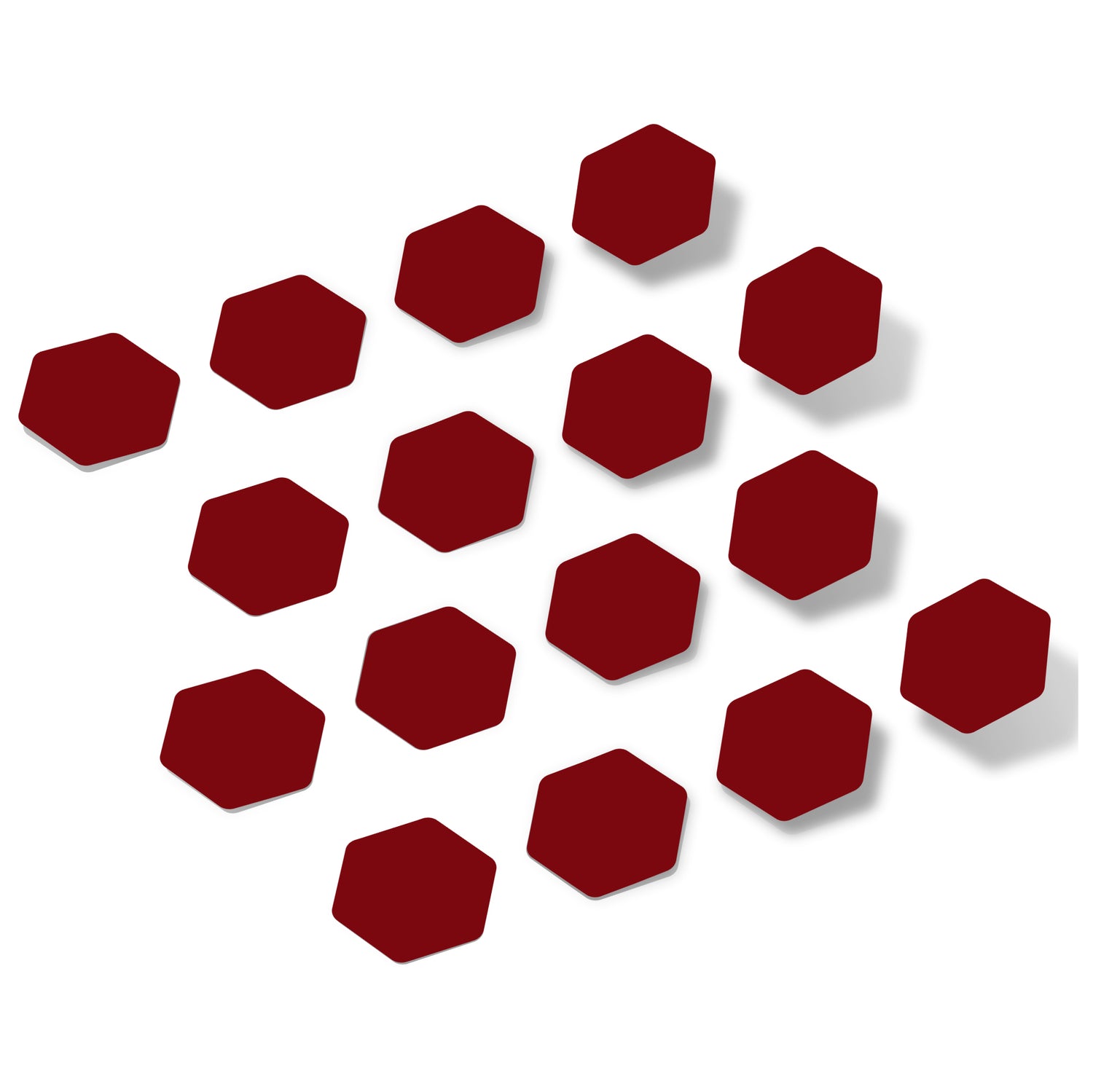 Enhance your space with our Burgundy Hexagons Vinyl Wall Decals in a combination of different sizes. Made from high performance grade vinyl, these quality die-cut decal stickers feature an anti-reflective matte finish and can be arranged in a variety of unique styles to decorate walls, vehicles, glass windows, electronics, or any other smooth surface, with easy, clean removal and no sticky residue left behind!