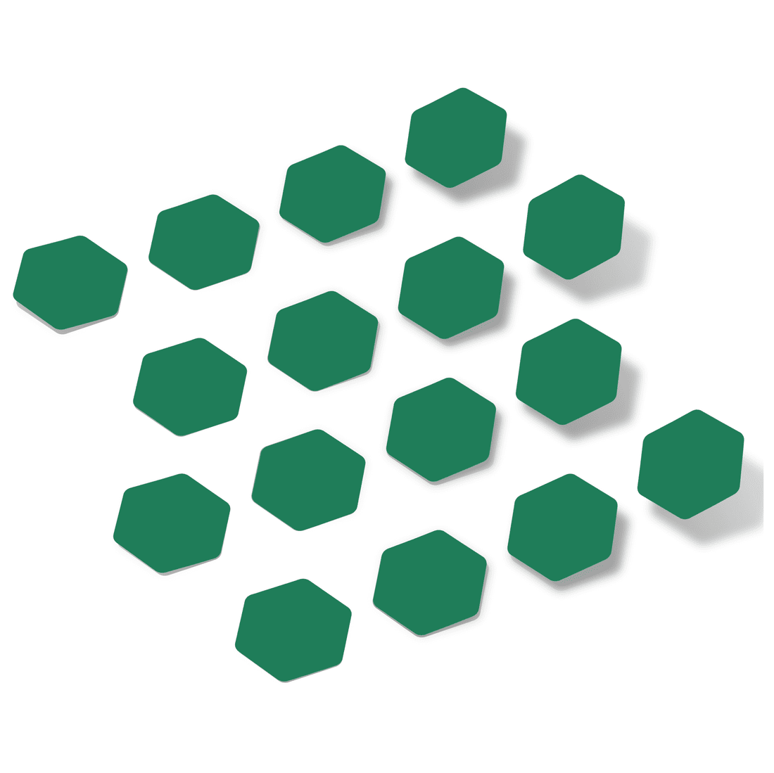 Enhance your space with our Green Hexagons Vinyl Wall Decals in a combination of different sizes. Made from high performance grade vinyl, these quality die-cut decal stickers feature an anti-reflective matte finish and can be arranged in a variety of unique styles to decorate walls, vehicles, glass windows, electronics, or any other smooth surface, with easy, clean removal and no sticky residue left behind!