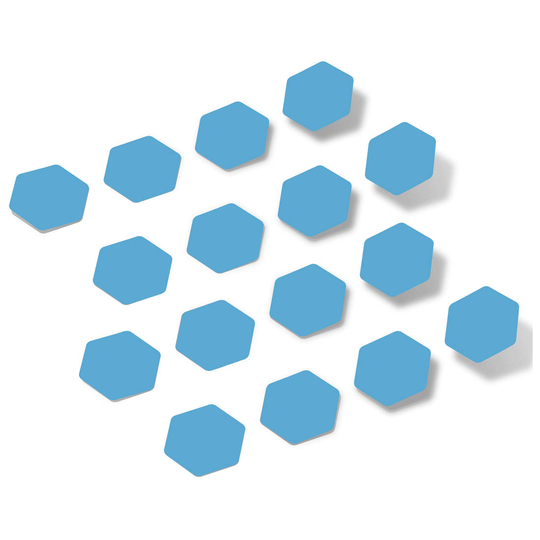 Enhance your space with our Ice Blue Hexagons Vinyl Wall Decals in a combination of different sizes. Made from high performance grade vinyl, these quality die-cut decal stickers feature an anti-reflective matte finish and can be arranged in a variety of unique styles to decorate walls, vehicles, glass windows, electronics, or any other smooth surface, with easy, clean removal and no sticky residue left behind!