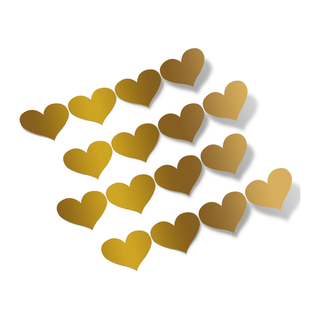 Choose any size. Enhance your space with our Metallic Gold Heart Vinyl Wall Decals. Made from high performance grade vinyl, these quality die-cut decal stickers feature an anti-reflective matte finish and can be arranged in a variety of unique styles to decorate walls, vehicles, glass windows, electronics, or any other smooth surface, with easy, clean removal and no sticky residue left behind!