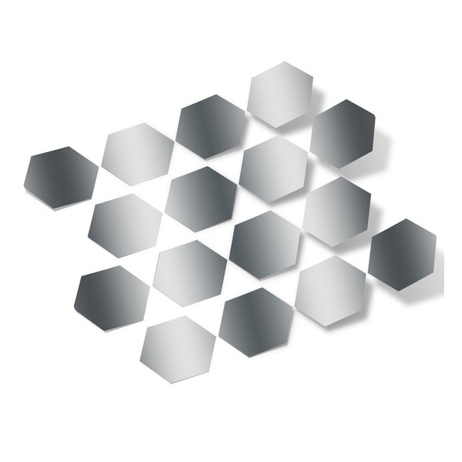 Enhance your space with our Metallic Silver Hexagons Vinyl Wall Decals in a combination of different sizes. Made from high performance grade vinyl, these quality die-cut decal stickers feature an anti-reflective matte finish and can be arranged in a variety of unique styles to decorate walls, vehicles, glass windows, electronics, or any other smooth surface, with easy, clean removal and no sticky residue left behind!