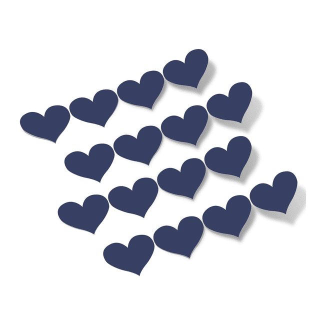 Choose any size. Enhance your space with our Navy Blue Heart Vinyl Wall Decals. Made from high performance grade vinyl, these quality die-cut decal stickers feature an anti-reflective matte finish and can be arranged in a variety of unique styles to decorate walls, vehicles, glass windows, electronics, or any other smooth surface, with easy, clean removal and no sticky residue left behind!