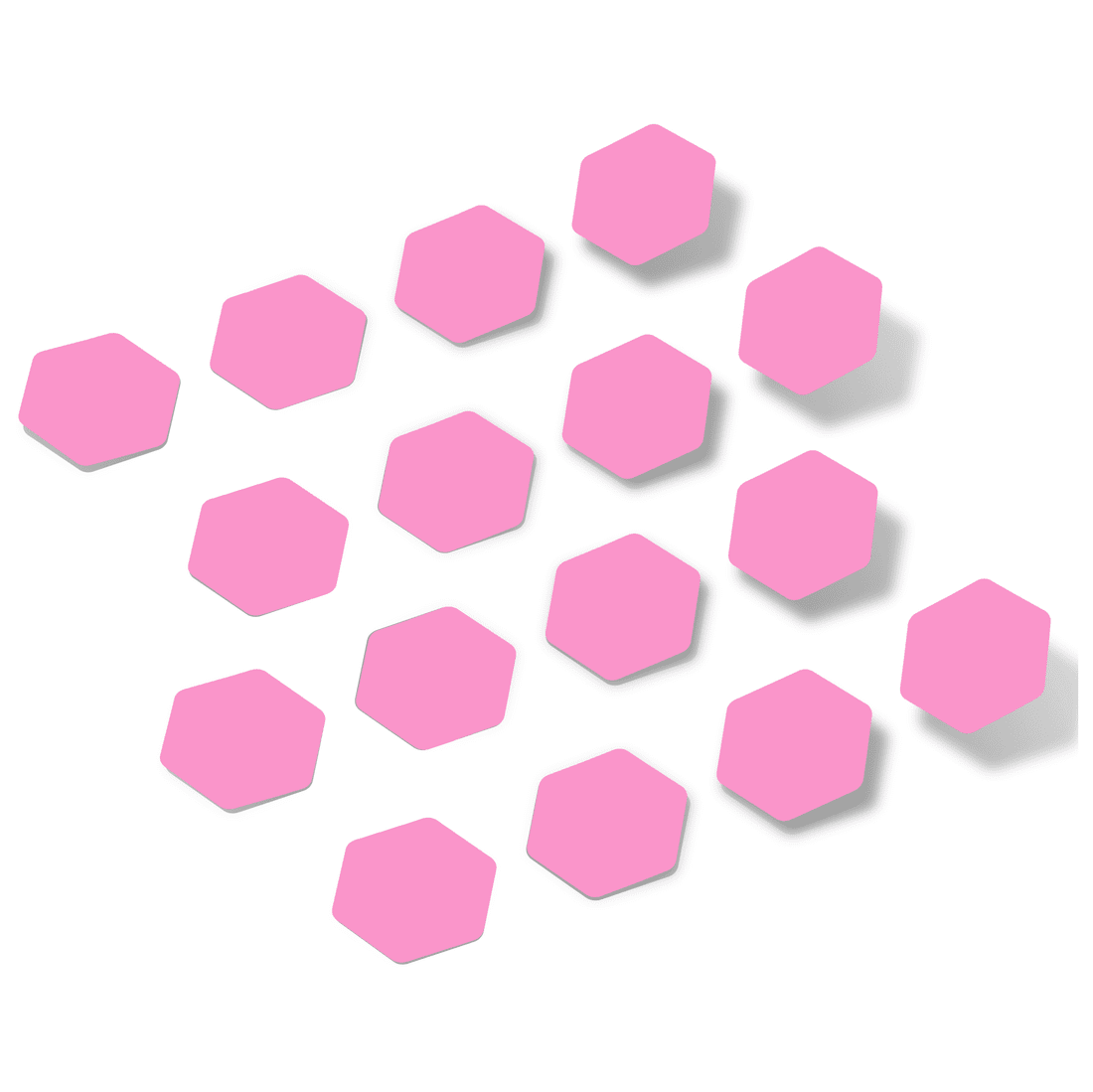 Enhance your space with our Pink Hexagons Vinyl Wall Decals in a combination of different sizes. Made from high performance grade vinyl, these quality die-cut decal stickers feature an anti-reflective matte finish and can be arranged in a variety of unique styles to decorate walls, vehicles, glass windows, electronics, or any other smooth surface, with easy, clean removal and no sticky residue left behind!