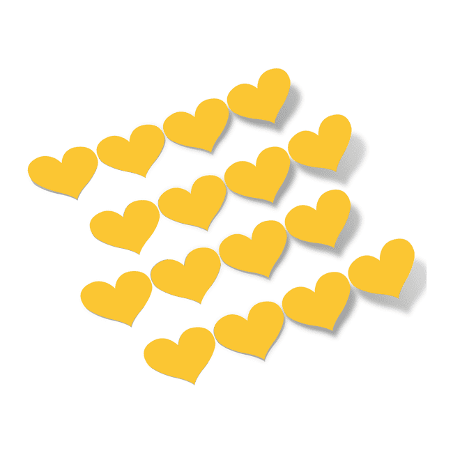 Choose any size. Enhance your space with our Yellow Heart Vinyl Wall Decals. Made from high performance grade vinyl, these quality die-cut decal stickers feature an anti-reflective matte finish and can be arranged in a variety of unique styles to decorate walls, vehicles, glass windows, electronics, or any other smooth surface, with easy, clean removal and no sticky residue left behind!